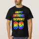 The front of this bold, exciting, and vibrant birthday themed shirt design features a large number "89" and the message "HAPPY BIRTHDAY,", both coloured with a rainbow spectrum gradient inspired pattern, along with a bold yellow personalised name. Cheerful birthday themed shirts like this might be worn by the attendees at a celebration or party being held in honour of somebody’s eighty ninth birthday. [~Z0000473]