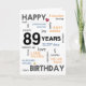 Celebrate the remarkable 89th birthday with our charming Happy 89th Birthday card! Whether it's for your beloved mum, cherished dad, dear brother, or beloved sister, this card offers a beautiful way to convey your sincere wishes and fill their special day with love and happiness. The front of the card features "Happy Birthday" alongside the prominent number 89, symbolising decades, years, months, weeks, days, hours, minutes, and seconds, emphasizing the importance of this extraordinary milestone.