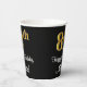 This stylish, sophisticated, and elegant birthday themed paper cup design features a large ordinal number “89th” having an imitation/faux gold-inspired gradient pattern, in addition to the birthday greeting message “Happy 89th Birthday,” and a custom name in a script-style font. The background is coloured black. Birthday themed paper cups like this might be fun to use at a party being held for somebody who is celebrating their eighty ninth birthday. [~Z0000538]