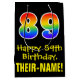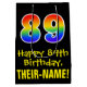 This colourful, exciting, and fun birthday gift bag design features a large number "89" with a rainbow spectrum gradient inspired pattern, along with the message "Happy 89th Birthday,", and a personalised recipient name. It also has a black-coloured background. A gift bag like this might be used when giving a gift or present in honour of somebody’s 89th birthday. [~Z0000512]