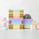 this colourful and cheerful birthday wrapping paper design features a cartoon-style depiction of a three-tier birthday cake having numeral-shaped candles on top showing the number “89“, along with the message “HAPPY 89TH BIRTHDAY,”, and a custom recipient name. The background features a multi-colour pastel rainbow spectrum inspired gradient pattern. Wrapping paper like this might be a fun way of wrapping a birthday present or gift being given to somebody who is celebrating their eighty ninth birthday. [~Z0000622]
