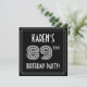 The front of this 1920s-1930s style inspired eighty-ninth birthday party/celebration invitation card design features an editable name, a fancy art deco style inspired number “89th”, the message “BIRTHDAY PARTY!”, and a multi-line border. The front also features a black-coloured background by default, but it can be customised to a different colour if desired. The back features personalised details about the event, such as the date, time, location, and any other important information. Elegant, luxurious, personalised invitations like these might be used to invite guests/attendees to a birthday gathering being held to celebrate somebody’s 89th birthday. [~Z0000615]