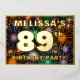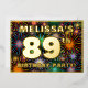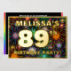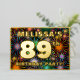 The front of this bold eighty-ninth birthday party/celebration foil invitation card design features a customisable name, a large number “89th”, the message “BIRTHDAY PARTY!”, and a border. The background of the front features an eye-catching, colourful pattern inspired by bursting celebratory fireworks. The back features personalised details about the event, such as the date, time, location/venue, and any other useful information. Customisable invitations like these might be a fun way to invite guests/attendees to a birthday party/gathering being held in celebration of somebody’s 89th birthday. [~Z0000602]