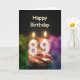A birthday cup-cake with candles. The candles are made up of the number 89, for a 89th birthday. A birthday card suitable for everybody.