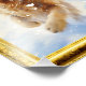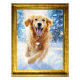 8 1/2 by 11 inch small poster size wall art - happy Golden Retriever running towards you in the snow. Cute and colourful. The frame is printed on. If you would like to delete the frame - click on Edit Design button and click on the frame and then delete. This is printed on photo paper. Inexpensive dog picture wall art for smaller living spaces. Thanks for looking.