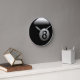 A round faced clock with an 8 ball design perfect for any pool, snooker, billiard room or bar.