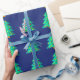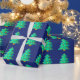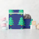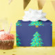 8 bit Green Christmas tree with blue background Wrapping Paper