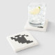 The coasters are gorgeous, a quality feel and heavy weight. They look like a precious archeological find. A rustic stone juxtaposed with a modern floral black and white print. I like the way the print goes slightly imperfect on the cut stone edges giving them a kind-of natural beauty.