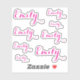 Create your own custom personalized name sticker in a bright pink script font, designed for a clean, modern aesthetic across your everyday essentials. Perfect for 4–5 letter names, this stylish typography sticker combines soft elegance with a fun pop of color, making it both practical and expressive. The flowing script keeps the design refined and easy to read, while the vibrant pink adds personality and warmth without overwhelming your items. Ideal for those who love a minimal aesthetic with a slightly playful, feminine touch, this sticker works beautifully across both everyday organization and subtle personal styling. Simply enter your chosen name to create a personalized sticker that feels both functional and visually appealing. Printed on durable vinyl with a precise kiss-cut outline, each sticker is water-resistant, scratch-resistant, and suitable for both indoor and outdoor use. …..PERFECT FOR: laptop stickers, MacBook personalization, iPad and tablet labels, phone decoration, clean desk setups, minimalist aesthetic lovers, journals and notebooks, planners and organizers, bullet journals, stationery styling, water bottles and tumblers, travel mugs, everyday organization, home office setups, work desks, student organization, college essentials, teens and young adults, modern lifestyle accessories, pink aesthetic lovers, subtle personalization, minimal name labels, custom name stickers, tech accessories, office supplies, desk accessories, storage labels, drawers and containers, travel organization, luggage tags, everyday carry items, simple modern style, sister gifts, best friend gifts, bestie gifts, girlfriend gifts, daughter gifts, mom gifts, aunt gifts, personalized gifts for her