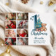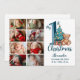 8 Photo Blue Teddy Baby 1st Christmas Holiday Card