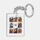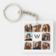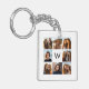 8 Photo Collage Custom Monogram Black and White Key Ring