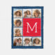 8 Photo Collage Monogram - Blue and Red Fleece Blanket