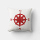 Throw pillow in an 8-point compass rose design with a slight raised, 3-d effect - deep red on a white background