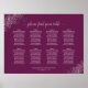 This beautiful wedding seating chart features a chic sophisticated design with grey text on a magenta or cassis purple background. The title is an elegant script calligraphy reading: please find your table. The corners are decorated with silver faux foil frills in a delicate floral pattern. Includes seating for 8 tables or 80 guests with 10 seats per table. Wonderful way to help your guests find their tables at your reception while adding a touch of style.