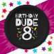 This Birthday Dude 8 design is perfect for a 8th birthday party celebration for boys turning eight years old. Features colourful kids birthday party graphic w/ Birthday Dude 8 design that your little dude will LOVE!