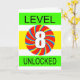 8th birthday card for a video gamer. Any computer gamer will love this card. With the slogan Level 8 Unlocked, this is sure to get a big grin from anyone who loves playing computer games.