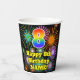8th Birthday: Fun Fireworks Pattern + Rainbow 8 Paper Cups