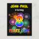 The front of this lively and vibrant birthday party invitation postcard design has an editable name, a fun bursting celebratory fireworks inspired pattern, and the message "8 YEARS OLD!" having a colourful rainbow spectrum inspired gradient pattern. The back features a customisable message that could describe when and where the party is being held, in addition to other relevant information. Invitation postcards like this could be sent to potential guests of a birthday party being held in celebration of somebody’s eighth birthday. [~Z0000452]