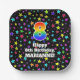 8th Birthday: Fun Stars Pattern and Rainbow “8” Paper Plate
