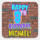 This fun birthday square sticker design features the message “HAPPY 8TH BIRTHDAY,” having a colourful, vibrant, graffiti-inspired appearance, along with an editable recipient name. The background features a brick wall inspired pattern. Fun, personalised stickers like this might be given as a birthday gift, or used while wrapping gifts, or perhaps used as birthday party decorations when celebrating somebody’s eighth birthday. [~Z0000535]