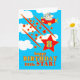 Happy Birthday little star, you're eight-years-old today says this adorable cloud and shooting star with animals flying a plane birthday card for a girl or boy's eighth birthday.