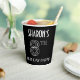 This elegant Roaring Twenties era inspired art deco style birthday themed paper cup design features an editable name, along with the message “8TH BIRTHDAY PARTY!”. The number “8TH” has a fancy geometric lined appearance. Stylish paper cups like this might be fun to use at a birthday party being held for somebody who is celebrating their eighth birthday, or some other 8th event. [~Z0000658]