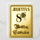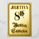 The front of this luxurious eighth birthday celebration foil invitation design features the message “8th Birthday Celebration” in elaborate script-style text. It also has a personalised name. The back features personalised details about the event, such as the date, time, location/venue, and any other information that may be relevant. Elaborate, opulent, editable invitations like these might be used to invite guests to a birthday party being held in celebration of somebody’s 8th birthday. [~Z0000596]