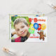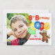 A fun 8th birthday party invitation with your child's photo featuring a prince of a teddy bear all decked out in a colourful jewelled crown holding a bunch of colourful balloon with letters on them that spell out PARTY. Personalising with your child's photo and name makes it extra special. All party information may be personalised using the template provided. We specialise in custom-made designs, so contact us if you would like a unique made-to-order layout using this basic royal teddy bear design for your kid's memorable birthday celebration.