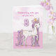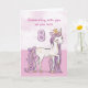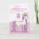 A sweet pink pony just like a special girl is prancing with the number eight! Gold looking details are woven in her mane and tail. Perfect card to wish any girl on her 8th birthday!