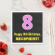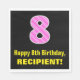 This fun and joyful birthday themed paper napkin design features a large number "8" with a stripes pattern containing heart shapes coloured light pink and dark pink. It also features the birthday greeting message "Happy 8th Birthday,", and a personalised name. Paper napkins like this might be nice to have at a party being held to celebrate somebody’s 8th birthday. [~Z0000436]