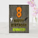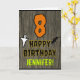 The front of this scary and spooky Halloween birthday themed greeting card design features a large number "8". It also features the message "HAPPY BIRTHDAY,", plus a customisable name. There are also depictions of a ghost and a bat on the front. The inside features a custom birthday greeting message, or could perhaps be cleared and left blank if a message is to be written by hand instead. A personalised birthday card like this might be a fun way to acknowledge somebody’s eighth birthday that also falls on Halloween (October 31st). [~Z0000410]