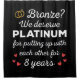 'Bronze? We deserve Platinum for putting up with each other for 8 Years' quote for a couple who got married 8 years ago or a couple renewing wedding vows on their bronze anniversary.