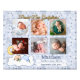 Very sweet baby blue teddy bear background and baby boy sleeping on a cloud photo frame collage print. Add six photos of baby and new parents, add baby's name and birth date.