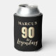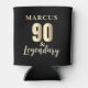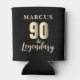 90 & Legendary Gold 90th Birthday Can Cooler. Celebrate 90th birthday with this elegant, customizable can cooler. Featuring bold, metallic gold-tone text '90 & Legendary', this design is ready for you to personalize with the name. It's the perfect gift to honor a father, grandfather, or cherished friend reaching this incredible milestone. This can cooler is ideal for birthday parties.