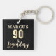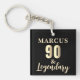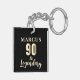 90 & Legendary Gold 90th Birthday Keychain. Celebrate a monumental 90th birthday with this elegant and personalized '90 & Legendary' design. Featuring a sophisticated gold font on a classic black background. An ideal gift for family, friends, and colleagues. Customize with any name to make it truly unique and a memorable keepsake for a truly special occasion.