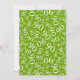 The front has text templates for Who, What, Where, When, and RSVP. It is framed around the edge with the same number pattern as the back, only the colours are reversed.