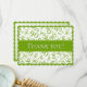 A cool way to say thank you to your guests at your 90th birthday party. There is a text template for the "Thank you" on front which makes it easy to change the text to your own words, name, initial, or monogram. The background is a green and white number pattern with the 90 repeated and scattered in random sizes and angles. There is a green scalloped frame on the front and back. The back is lined for your hand-written message. Not just for your "Big 9-0" birthday; the design is suitable for all occasions or events celebrating the number ninety.