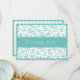 A cool way to say thank you to your guests at your 90th birthday party. There is a text template for the "Thank you" on front which makes it easy to change the text to your own words, name, initial, or monogram. The background is a teal and white number pattern with the 90 repeated and scattered in random sizes and angles. There is a teal scalloped frame on the front and back. The back is lined for your hand-written message. Not just for your "Big 9-0" birthday; the design is suitable for all occasions or events celebrating the number ninety.