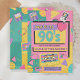 Join us, back in the 90's! Invite everyone to party in your special 90's birthday party with a 90's theme invitation template. This 90's theme birthday invitation features a rainbow of colours with cassette tape, floppy disc, and a friendship bracelet on a modern style invitation design.