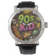 90s Kids Grunge Seamless Pattern: Pizza, Skeletons Watch