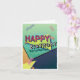 90's themed birthday card featuring a fun style typography of 'HAPPY BIRTHDAY'. Design includes elements of blues, oranges, and pinks, yellow, ripped edges, geometric patterns and shapes inspired by the 90's. Includes a template for personal customisation.