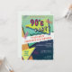 90's Party themed invitation featuring a fun style typography of '90's Party''. Design includes elements of blues, oranges, and pinks, yellow, ripped edges, geometric patterns and shapes inspired by the 90's. Includes a template for personal customisation.