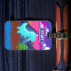 90s Pixel Gamer Pixelated- Dinosaur Illustration Single-sided w/ Card Slot Luggage Tag; This funny nostalgic design features pixel art of a Dinosaur in nature. There is mountains, fir trees, and clouds in colorful sky. In front pixelated font "START" for beginning of the game, I've used a pop color palette, to give the art a 90s Video Games Aesthetic.