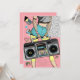 Fun, colorful, bright look with strong bold 90s design vibes! Sexy female holding a boombox cassette tape player!