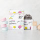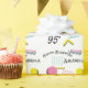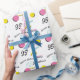 This custom wrapping paper features a retro 1990s kid theme with a colourful memphis pattern. The memphis pattern consists of bright, pink, yellow, and teal geometric shapes that was popular in the 90s. The phrase "Happy birthday" is printed above a sample name in black. A sample birth year is printed in a large black fot to the bottom left of the design. You can personalise the wrapping paper to include your own name or custom text.