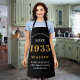 Elegant Black & Gold Chic Apron - 90th Birthday 1935 Name Personalised Kitchen & BBQ Essentials. Celebrate a fabulous birthday with style and practicality! This Elegant Black & Gold Chic Apron is the perfect accessory for the culinary enthusiast in your life. Its eye-catching design, enhanced with a touch of gold, adds a charming vibe to any kitchen setting. The apron's high-quality fabric ensures durability and comfort while cooking or performing any other kitchen tasks. Whether baking a birthday cake or grilling a birthday steak, the chic apron is the perfect blend of elegance, style, and functionality—to mark a birthday, or simply, to make everyday cooking feel special. • Personalised touch - Crafted with a special dedication to those born in in that special year, your name printed in gold gives it an extra special touch.
