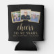 This custom 90th birthday can cooler features a collage of three custom square photos above the phrase "Cheers to 90 years" in elegant gold-coloured calligraphy script and sans serif font on a black background. Add the guest of honour's name and birthday below. A great way to celebrate someone who's turning ninety!
