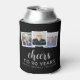 90th Birthday 3-Photo Black White Script Cheers Can Cooler