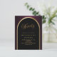 An elegant 90th birthday invitation. A black and burgundy background with a golden arch on the front.