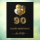 For a glamourous 90th birthday party. A black background, decorated with balloons. With the text: Happy Birthday. Personalise and add a name. The name is written in dark rose gold with a modern hand lettered style script with swashes. Number 90 is written with a trendy balloon style font, leopard pattern. To keep the swashes only delete the sample name, leave the spaces or emoji's in front and after the name.